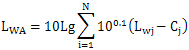 式中:Lwj——第j個頻帶聲功率級 。