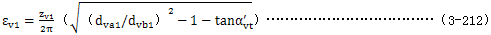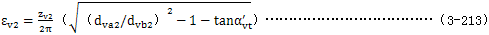 式中εv­——齒頂重合度,取εv1­或εv2­中的較大者 ,εv1­及εv2­由公式(3-212)及(3-213)確定。