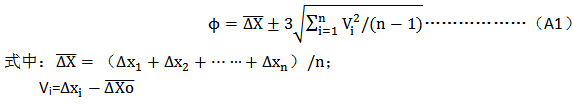 對每個标準元件,在被檢定儀器上進行n次重複測量(n≥)将每次測得值(或曲線)與标準值(或曲線)進行比較,其差值爲ΔX1,ΔX2,……ΔXn,儀器的示值誤差φ爲: