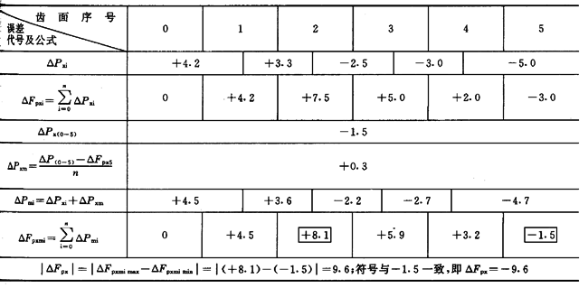 ΔFpxmi——修正後第i齒相對於0齒面的軸向齒距偏差。