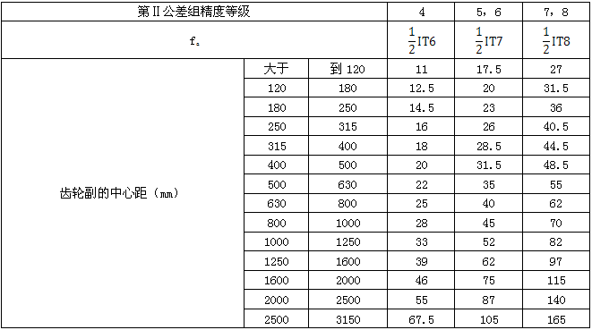 y方向軸線平行度公差fy=1/2Fβ